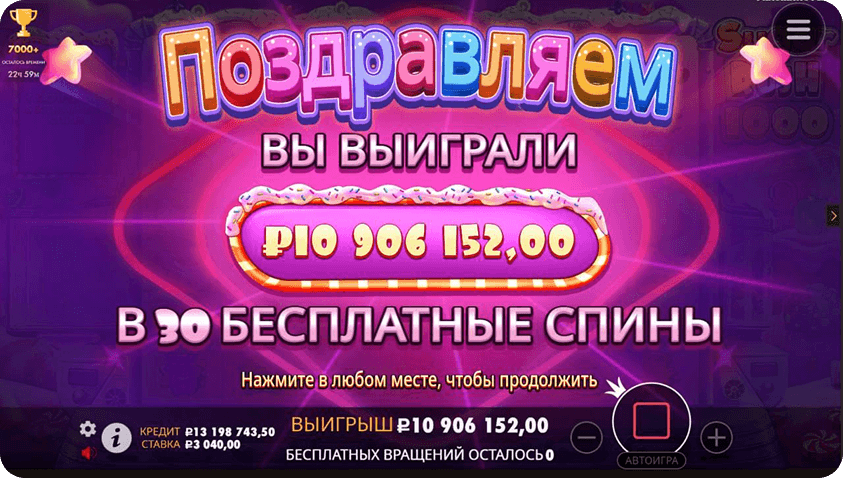 Максимальный выигрыш в Sugar Rush ограничен множителем x5000 от ставки в оригинальной версии. В версии Sugar Rush 1000 потенциал увеличен до x10 000, что делает её ещё более привлекательной для охотников за крупными выигрышами. Достичь такого результата можно только в бонусном раунде с накоплением липких множителей, и Sugar Rush win такого масштаба действительно случаются, о чём свидетельствуют многочисленные Sugar Rush отзывы в сети.